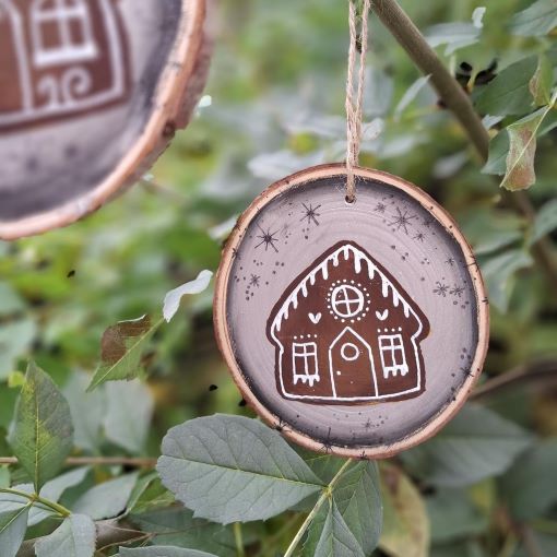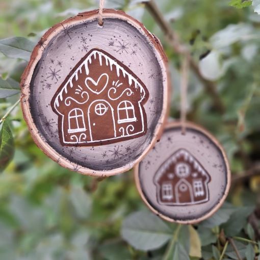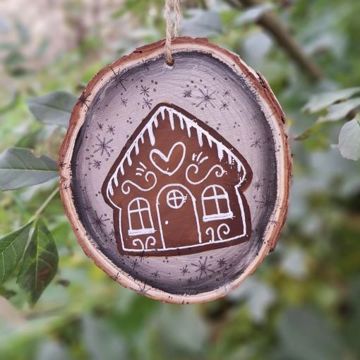 Disfruta de una decoración única hecha con madera natural. Pintada a mano con dibujos originales. ¡Celebra navidad con estilo y personalidad! Descubre la magia de los colores y los diseños tradicionales en esta decoración única. ¡Añade un toque especial a tu hogar con esta dulce casita de jengibre!